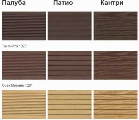 Варианты оттенков и фактур террасной доски на основе полипропилена