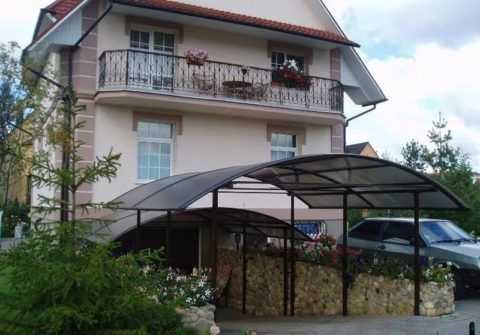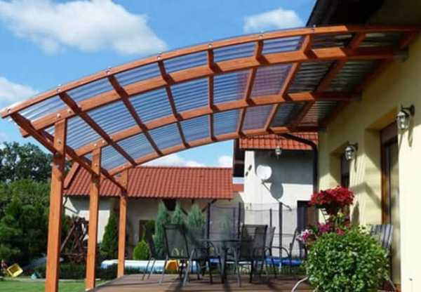 - Из поликарбоната можно создавать навесы любой формы, благодаря гибкости материала.