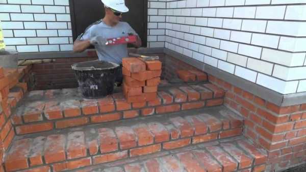 Теперь можно строить и само крыльцо со ступеньками. Самый простой вариант – это кирпич или блоки, которые после возведения всей закрытой конструкции будут облицовываться (см. фото выше). Если решено делать крыльцо из бетона, то можно на засыпанную подушку, уложив армокаркас и установив опалубку, сразу заливать бетонный раствор. То есть, в этом случае можно обойтись и без фундамента.