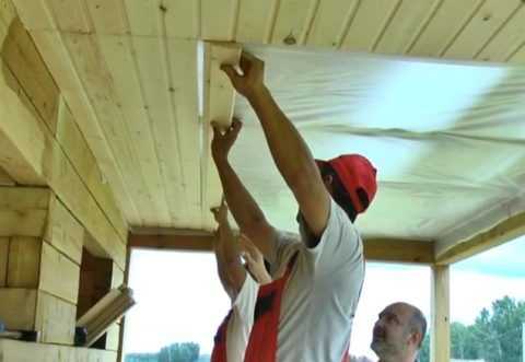 В первом случае крыша будет представлять собой небольшой навес, оборудовать который проще простого. Если сделать навес в виде продолжения крыши дома, то получится очень оригинальное и стильное укрытие от погодных осадков. Стропильные ноги не надо резать, достаточно их «нарастить». В этом случае крыша не закрыта снизу, а значит, ее каркас будет постоянно подвергаться воздействию влаги. Поэтому лучше всего использовать доски из дуба, перед этим необходимо обработать их специальными средствами и растворами. Если главная задача крыши – закрыть маленькую террасу, то для кровли лучше использовать поликарбонат или металлический профиль, ведь их удобно гнуть.