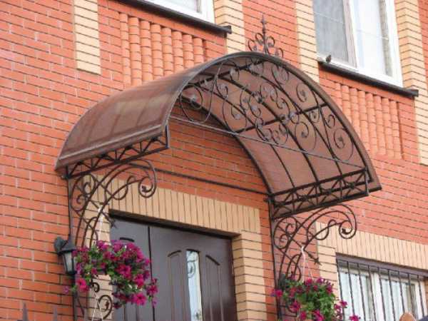 Ажурный козырек над входом.Важно: поликарбонат крепится при помощи саморезов.