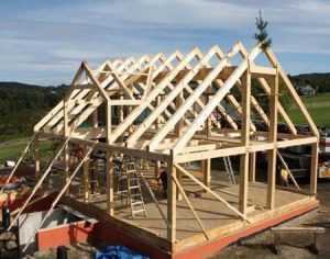 Основанием крыши любого типа служит стропильная система, для изготовления которой в большинстве случаев используют доски или деревянные бруски. На эту конструкцию ложится вес кровли, поэтому для работы лучше выбирать высококачественную древесину, на которой нет большого количества сучков, трещин и гнили. Чаще всего стропильный каркас возводится из древесины хвойных пород. Предварительно пиломатериал тщательно просушивают. Иногда для работы используют бревна, но на высоте с таким материалом работать неудобно из-за его тяжести.