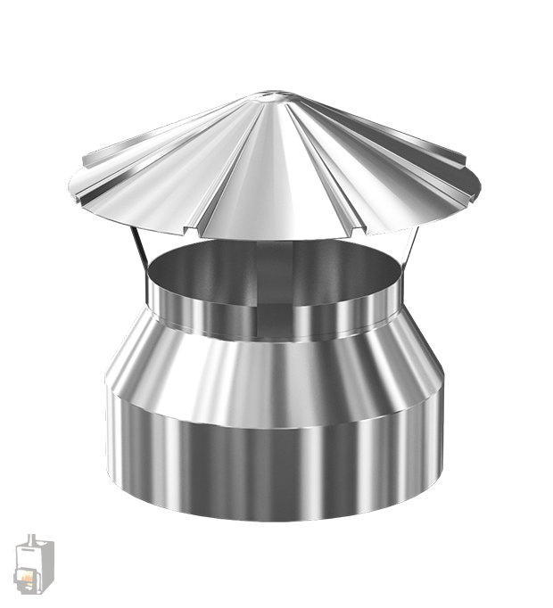 Качественно изготовленный дымник включает горизонтальный экран из нержавеющей стали, который устанавливается у крышки. Кроме того, что такой экран придает всей конструкции дополнительную жесткость, он отсекает выбросы из трубы и надежно защищает колпак от прогорания и образования на его внутренней поверхности конденсата, а значит, и от коррозии.