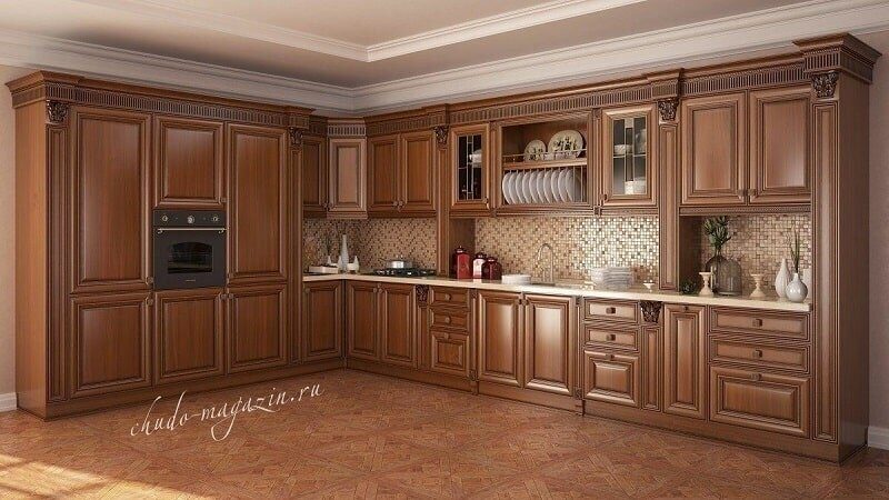 Для тех, кто предпочитает традиционный классический стиль, выбирая угловой кухонный гарнитур, следует присмотреться к таким породам: