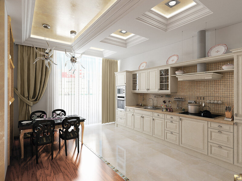 - Если она является домохозяйкой, то большое количество завитушек на кухонной мебели для нее не проблема. А значит, все стили, в которых присутствуют различные красивые элементы, могут быть приняты в вашу кухню.