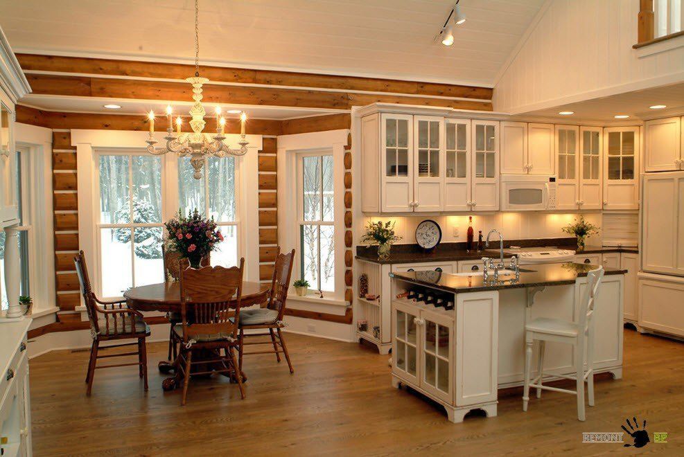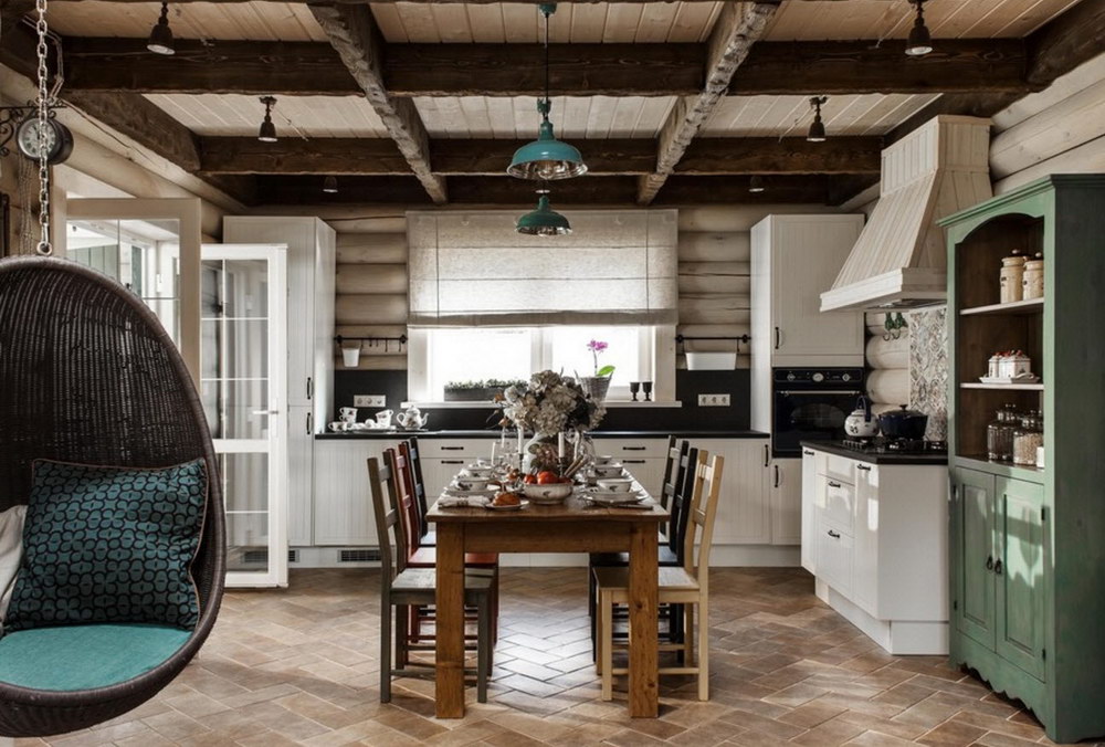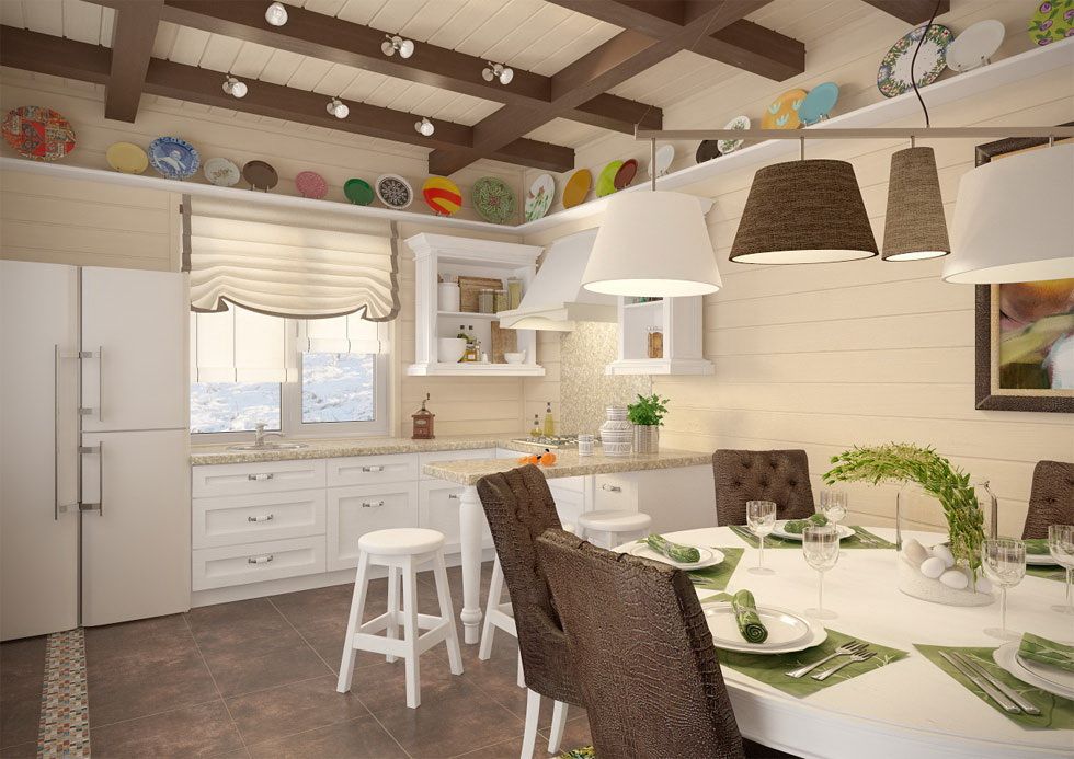 Кухня в загородном доме из клееного бруса в стиле Прованс