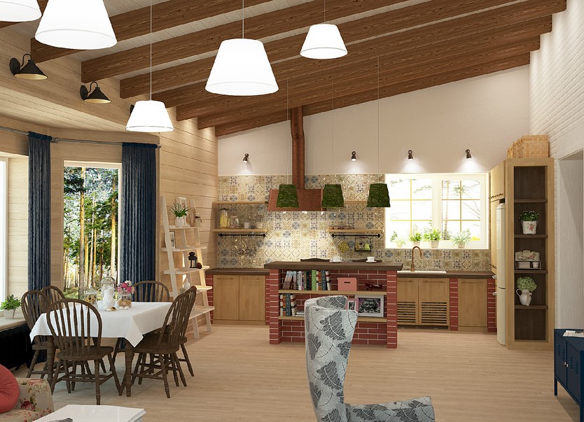 Дом из клееного бруса интерьер в стиле деревенском Кантри Прованс