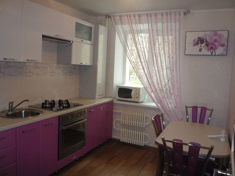 В кухне применяем светлые цвета – они зрительно увеличивают пространство помещения. Занавески делаем из легких, прозрачных тканей, которые будут хорошо пропускать дневной свет.