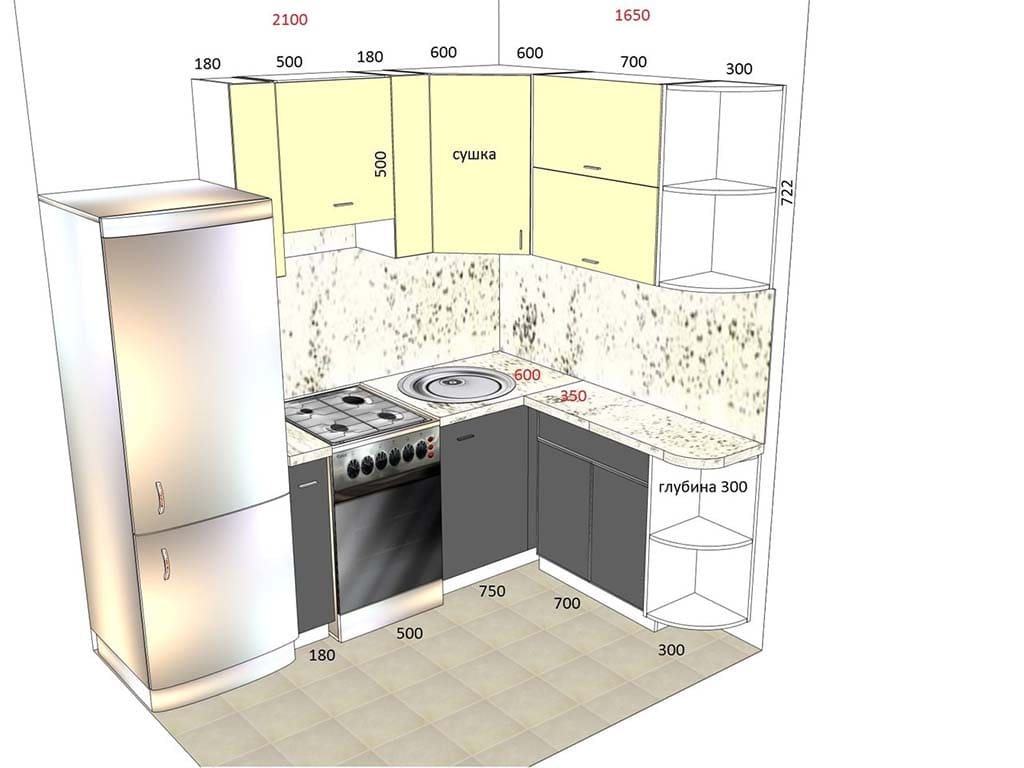 Чтобы сделать кухню в хрущевке с холодильником меньше 6 кв.