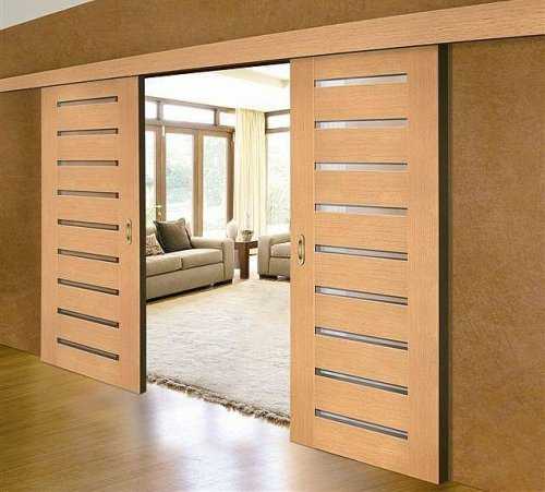 Прежде чем приступить к монтажу дверей, нужно выбрать подходящую конструкцию. Важно определиться с двумя моментами: материалом полотна двери и типом раздвижного механизма.