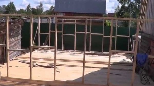- Сначала возводим каркас, используя балки из дерева, толщиной, как уже говорилось, не менее 5 сантиметров.