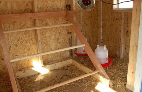 «столовая» – место, где курица может поесть корма и попить воды;- насест – место для сна;