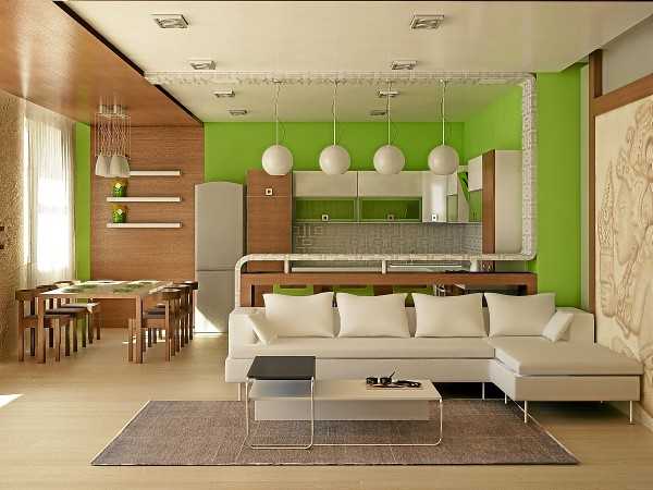 - Как мне кажется, главным минусом объединенной с комнатой кухни является факт распространения в процессе готовки грязи и жира на мебель или шторы в комнате. Согласитесь, это может доставить определенные неудобства.