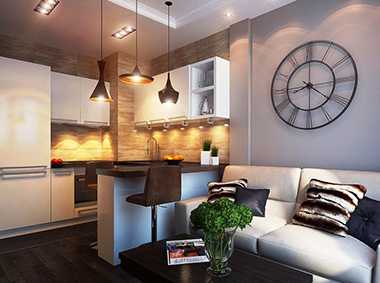 Объединение кухни и гостиной в основном происходит в трехкомнатных квартирах со свободной планировкой, что позволяет создать максимально комфортное пространство для полноценного семейного общения, при этом остаются две независимые комнаты, где при желании можно уединиться. Оправдано создание кухни-студии и в малогабаритной однокомнатной квартире, особенно если не планируется использовать кухню в качества круглосуточно работающего «горячего цеха». Такой вариант оптимален для семейных пар без детей, которые особо не вникают в быт и редко засиживаются дома, а также для холостяков.