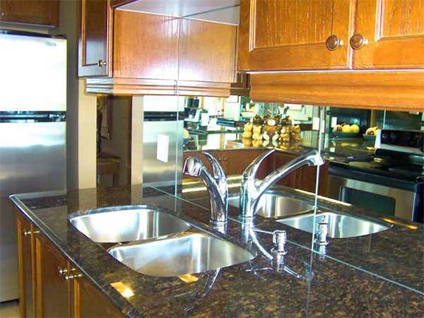 Перед креплением панелей следует до зеркального блеска вымыть их обратные стороны. При всех способах крепления необходимо обеспечить герметичность стыка между фартуком и столешницей. Для этого стык закрывают декоративной планкой и сажают ее на герметик.