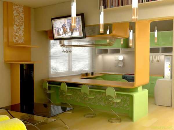 - Давно вошла в моду барная стойка, иногда в готовые гарнитуры уже входят в комплектацию, но можно ее поставить и отдельно.