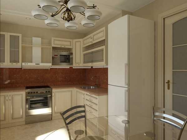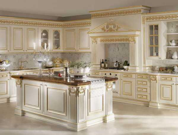 Часто неуместен классический вариант в миниатюрном пространстве. В большой кухне удачны кремовые тона и мебель с позолотой.