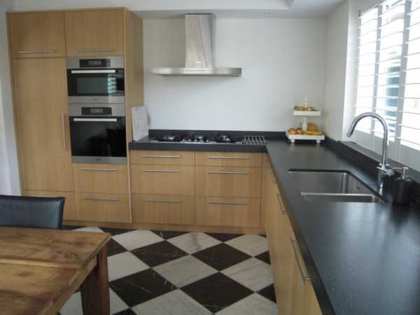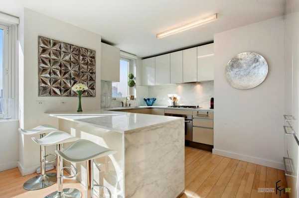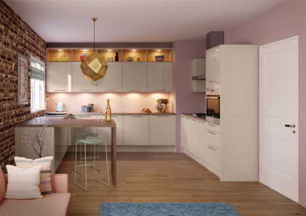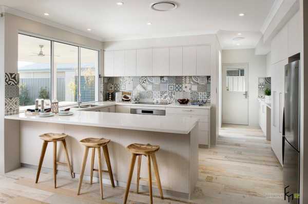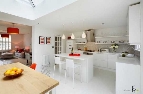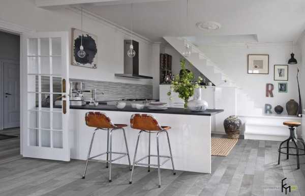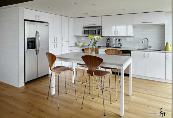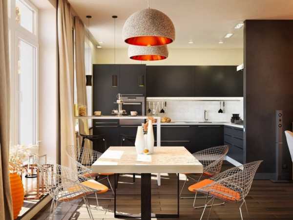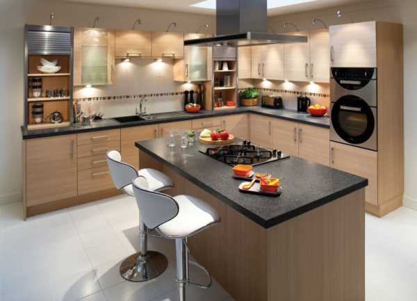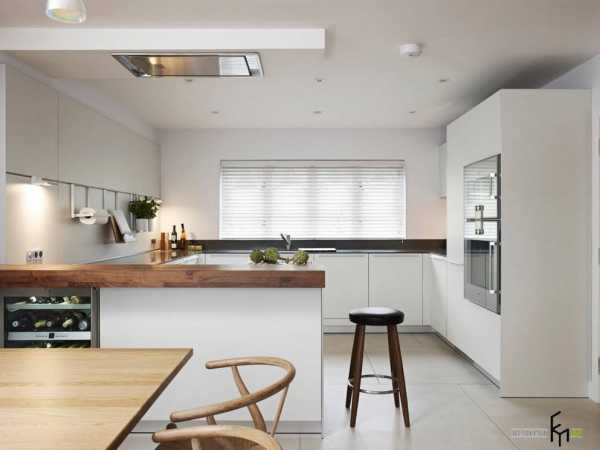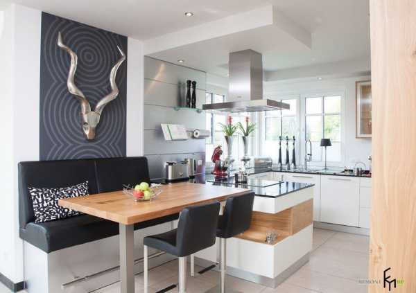 Тогда зону столовой можно устроить по одной стороне кухни, а зону разделочной – по другой. Плюс таких кухонь заключается в том, что их используют и как угловую кухню, и как столовую. Но это возможно только для больших (не менее 35 м2) помещений.