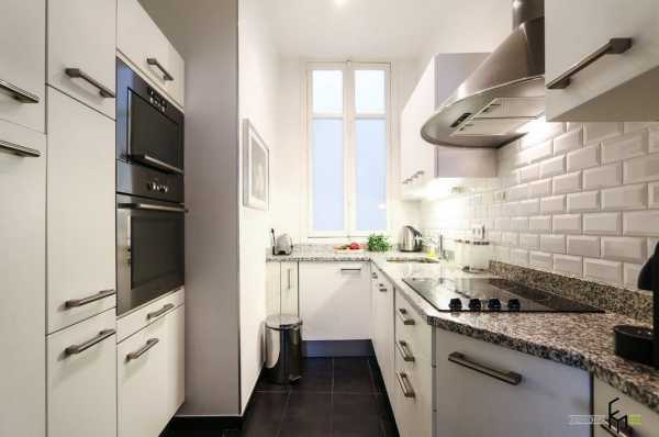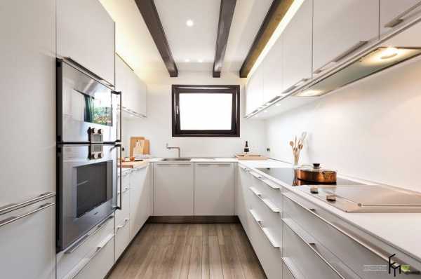 Форма кухни имеет решающее значение. Для узкой и длинной кухни лучше разместить мебельный гарнитур вдоль одной длинной стенки для свободного доступа.