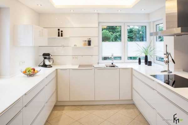 Однако тут имеется маленький нюанс: кухонные гарнитуры П-образной формы мало подходят для маленькой кухни, поскольку «съедается» определенная часть пространства, а расположение шкафов, плиты с мойкой и столешниц для разделки продуктов значительно снижает уровень комфорта нахождения на такой кухне.