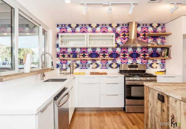 Выбирая интерьер для кухни, нужно помнить о том, что горизонтальные полосы «растягивают» помещение по ширине. Поэтому для угловой кухни подходит рисунок с вертикальными (как яркими, так и едва заметными) элементами, за счет которых кухня зрительно станет казаться выше и стройнее.