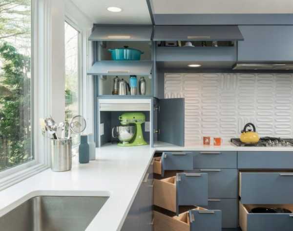 Также для экономии кухонного пространства можно воспользоваться еще некоторыми хитростями, а именно: