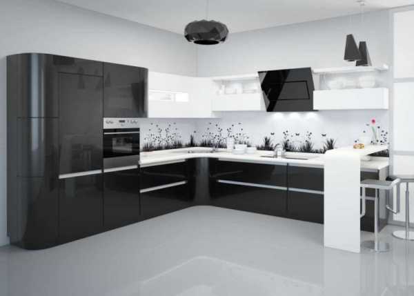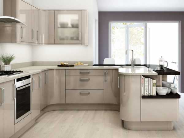 Использование глянцевых поверхностей при изготовлении современной кухонной меблировки – частый дизайнерский прием. Именно за светлыми ламинированными плоскостями легче всего ухаживать, а для любой хозяйки такой аргумент может стать решающим при выборе кухонного гарнитура.