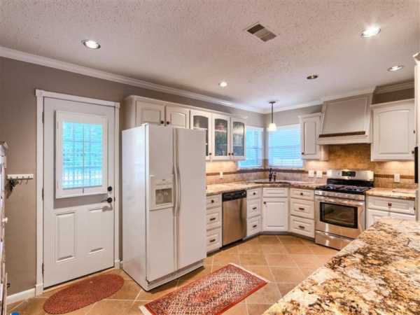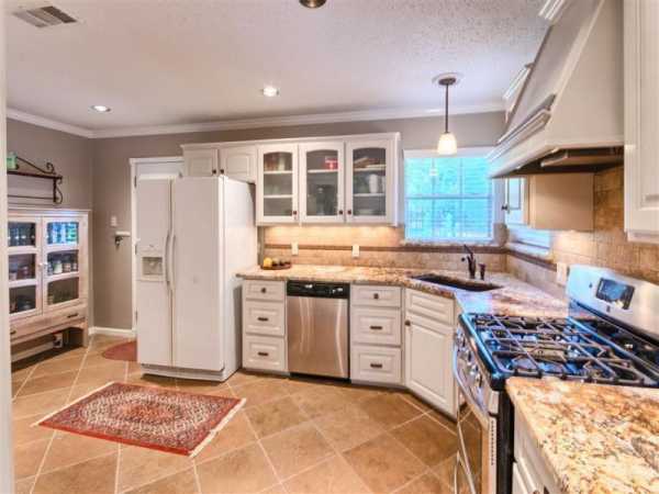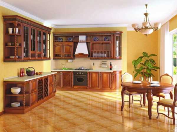 В большой кухне будет как нельзя лучше смотреться классический гарнитур из массива дерева с многочисленным количеством резных открытых полок и других эксклюзивных дополнений.
