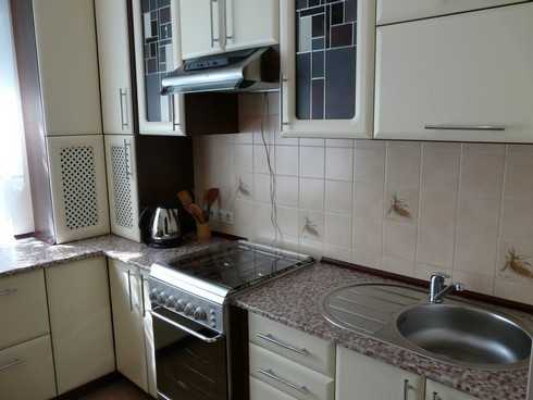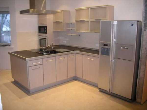 Если речь идет о комнате прямоугольной формы, наиболее подходящим будет вариант Г-образной расстановки мебели, установка угловой мойки для кухни.