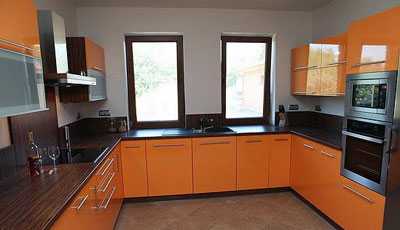 При помощи угловой кухни можно решить не только вопрос свободного пространства, но и разрешить неудачное размещение окон и дверей. Для этого вам поможет мебель, выполненная на заказ.