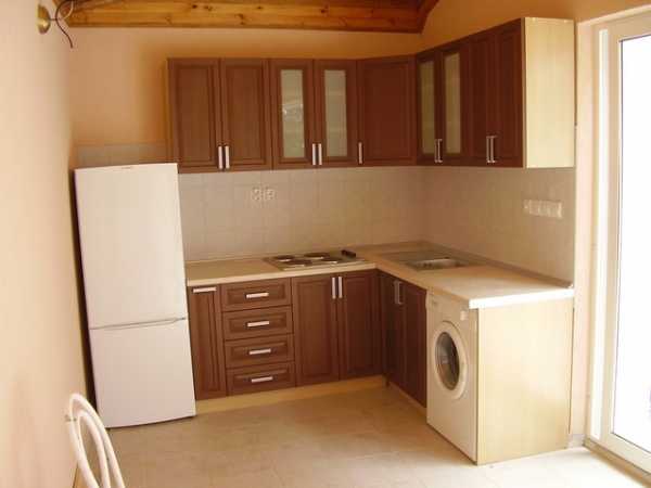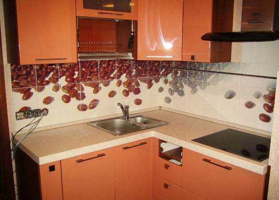 Что касается плитки, раковины, холодильника, то их зачастую устанавливают одной линией, при этом остается свободной узенькая угловая часть, что ориентировочно триста пятьдесят сантиметров.