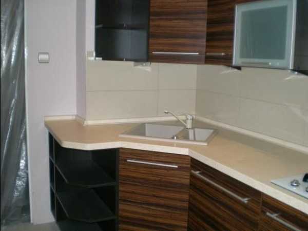 Эргономичность. Рациональное размещение всех необходимых отделений, определенная экономия пространства и времени на «лишние» действия, отличный внешний вид и компактность – все это делает угловые кухонные гарнитуры особенно популярными среди владельцев «хрущевок».