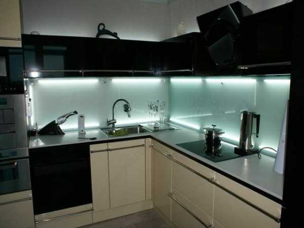 В кухонных гарнитурах используют световые подсветки. Темный интерьер конечно выглядит богато, но он будет визуально уменьшать небольшое пространство и лишит такую кухню уюта.