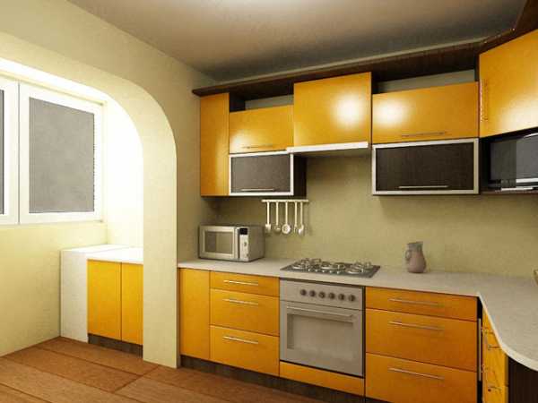 - Использование балкона. Оптимально для небольших кухонь. Балкон можно использовать для готовки или организовать там обеденную зону.