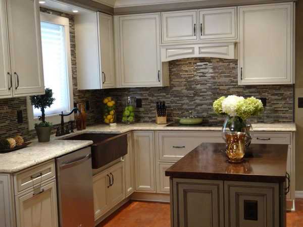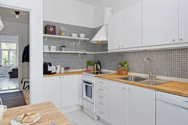 В отношении отделки фасадов необходимо отметить следующее: любой объемный декор или роспись на дверцах или фартуке и выступающая фурнитура в маленькой кухне неуместны – они делают ее еще теснее. Предпочтение надо отдавать гладким поверхностям фасадов, утопленным или лаконичным ручкам, однотонным фартукам из скинали или некрупной плитки.