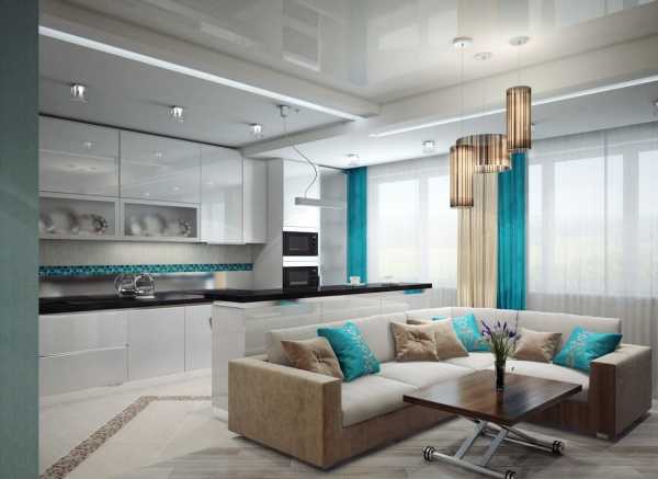 Воплощение оригинальных дизайнерских идей и расширение площади иногда требует объединить кухню и жилую комнату в единое пространство. Проекты ремонта однокомнатной квартиры предусматривающих объединенную площадь обладают массой достоинств: