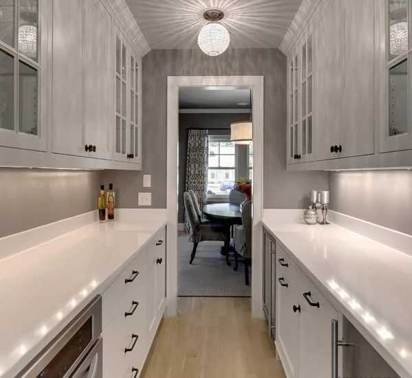 Во-вторых, во многих квартирах есть возможность установить новую перегородку не по линии прежнего дверного проема, а углубившись в коридор. Таким образом, появляется дополнительная ниша, которую можно использовать под холодильник или электропечь с вытяжкой. Согласование новой перегородки не встретит возражений, так как коридор – нежилая зона, и за счет него разрешается расширять кухню.