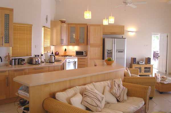 - Правильный выбор мебели. Вся мебель и прочие аксессуары кухни и гостиной должны быть подобраны к вашему кухонному гарнитуру, иначе вы рискуете нарушить картину целостности помещения.