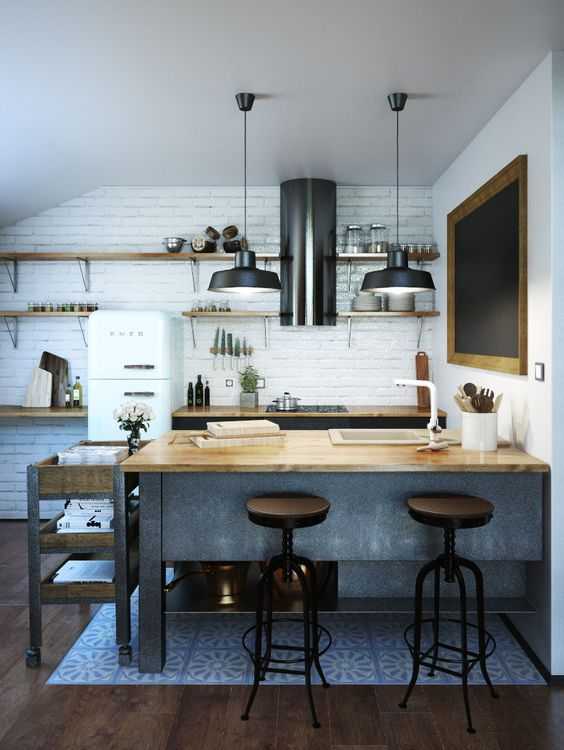 Маленькая кухня в стиле лофт (75 фото): идеи, дизайн, декор