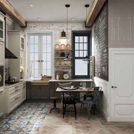 В наше время это направление пользуется спросом среди креативных и творческих людей. Если вы хотите сделать, чтобы интерьер даже небольшой кухни выглядел просторным и оригинальным, обязательно обратите внимание на этот стиль. Только в нем приветствуется сочетание состаренной внутренней отделки с современными бытовыми приборами, винтажной сантехникой и мебелью.