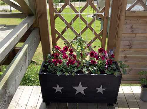 Маленький бюджет не значит, что вы не можете позволить себе красивых милых деталей, как этот углубленный в пол террасы ящик с растениями и гравием.