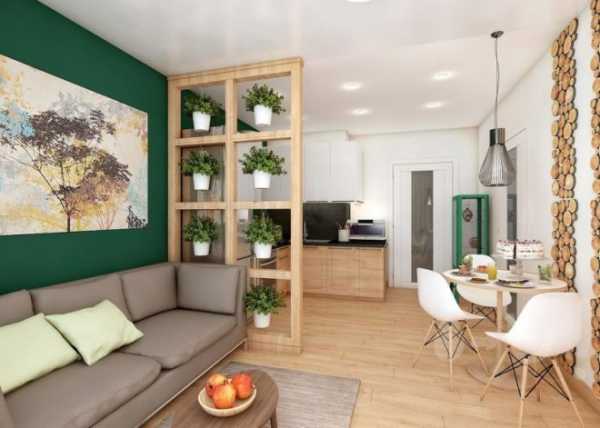 На этапе перепланировки учтите момент, как будет отделяться зона кухни от гостиной.