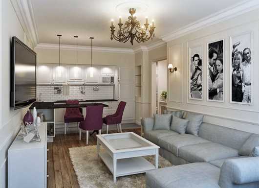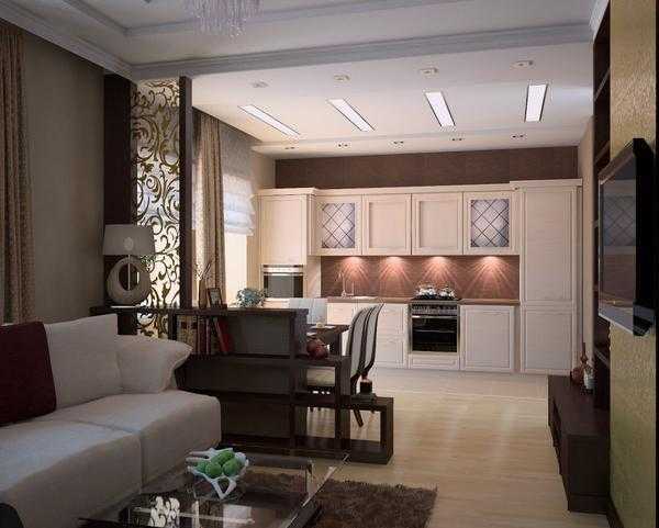 Помните: в такой малогабаритной комнате стоит учесть каждый сантиметр пространства грамотно. Поэтому ремонт гостиной и кухни без использования эскизов, чертежей и модели осуществлять не рекомендуется.