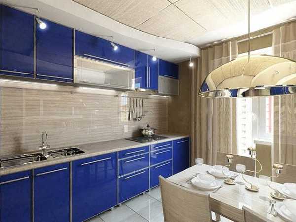 Линейная планировка кухни с ярким неординарным дизайном