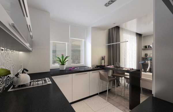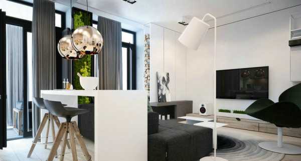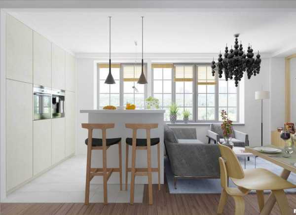 Дизайн маленькой кухни-гостиной с барной стойкой