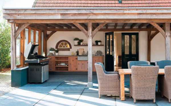 Летняя кухня-барбекю в стиле кантри — отличное дополнение для загородной усадьбы