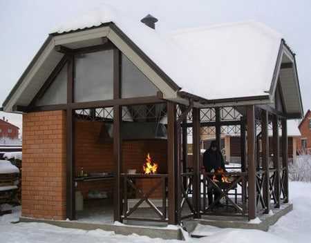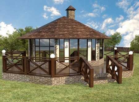 Закрытая конструкция больше напоминает не беседку, а настоящий дом. Она имеет следующие особенности: