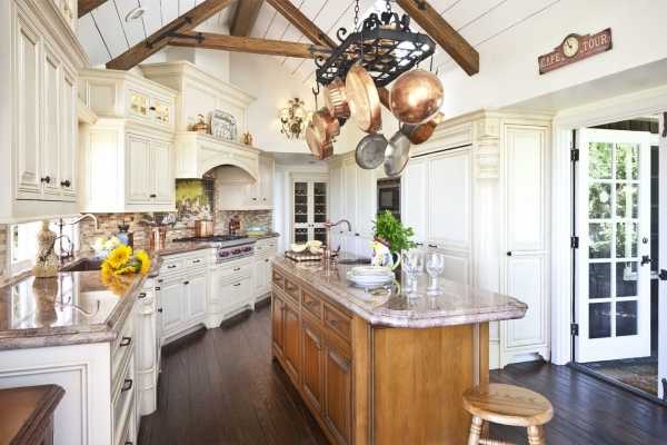 - кантри; Теплые светлые тона стилистики поспособствуют особому уюту жилья и удобству использования кухонного пространства, свободного места в холле.