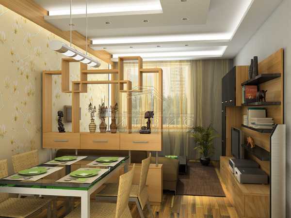- зонировать помещение поможет разное напольное покрытие, подсветка, разное покрытие стен. Главное, чтобы все элементы как в обновленной кухне, так и в обновленной гостиной, сочетались между собой.