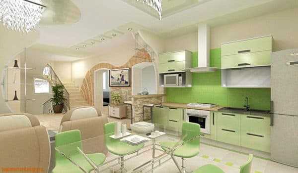 Читайте также про дизайн кухни-гостиной-столовой в частном доме.